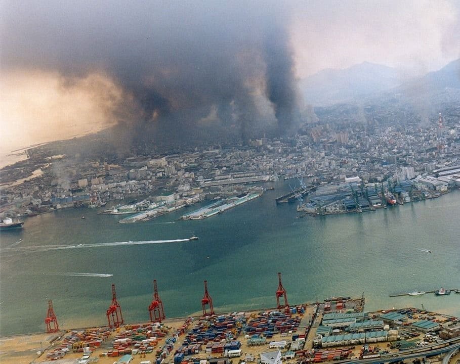 Deux événements majeurs marquent profondément l’histoire du port : les bombardements alliés de 1945 pendant la Seconde Guerre mondiale, puis, surtout, le séisme de Hanshin-Awaji du 17 janvier 1995.
